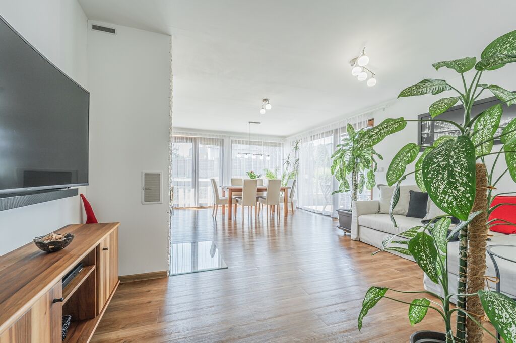 Tato lokalita je ceněná pro svou dostupnost, zeleň a vysokou kvalitu rezidenčního prostředí. Dům má užitnou plochu 97,1 m² a je umístěn na pozemku o výměře 645 m². Jedná se o dřevostavbu se zateplením tloušťky 12 cm a sedlovou střechou KM Beta. Plastová okna s izolačním trojsklem přispívají k energetické efektivitě domu. Interiérové dveře a zárubně jsou dřevěné.