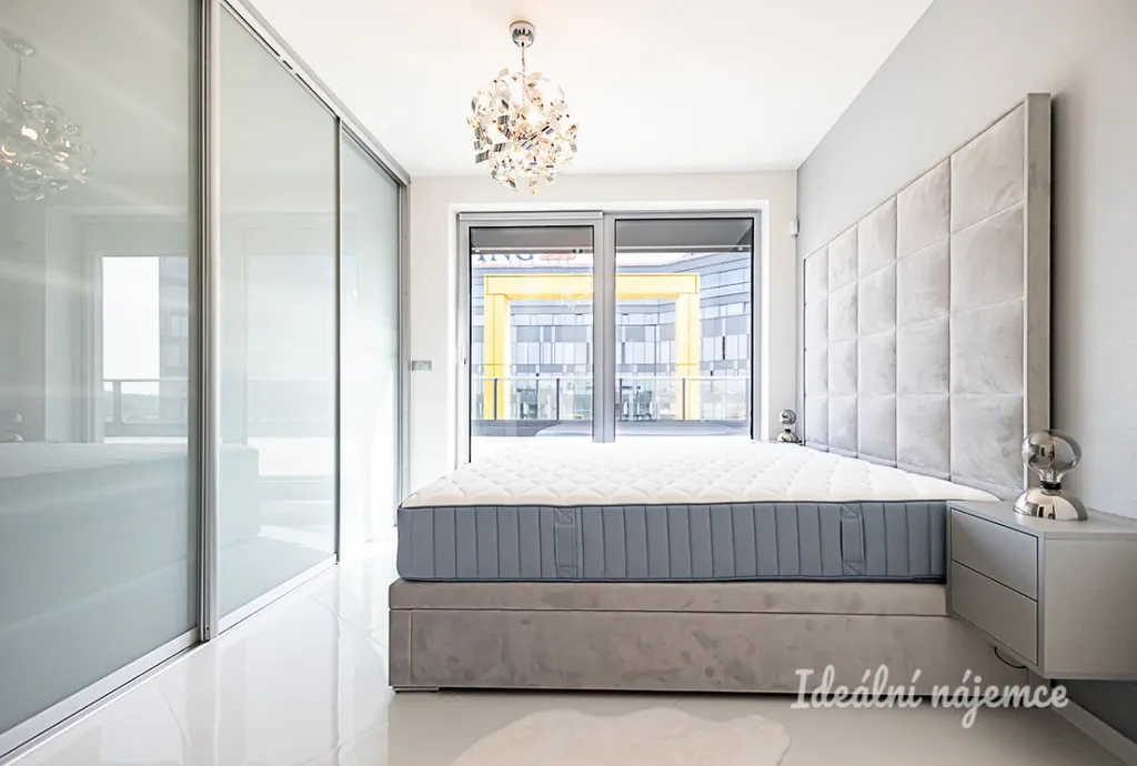 K dlouhodobému podnájmu nabízíme exkluzivní rezidenční byt 4+kk s kompletním zařízením, situovaný ve vyhledávané lokalitě Praha 9 – Libeň. Tento luxusní byt o celkové výměře 107 m² se nachází ve 13. patře moderní rezidence Harfa Design Residence. Velkým benefitem je prostorná terasa, která obklopuje značnou část bytu, a k dispozici je rovněž garážové stání.