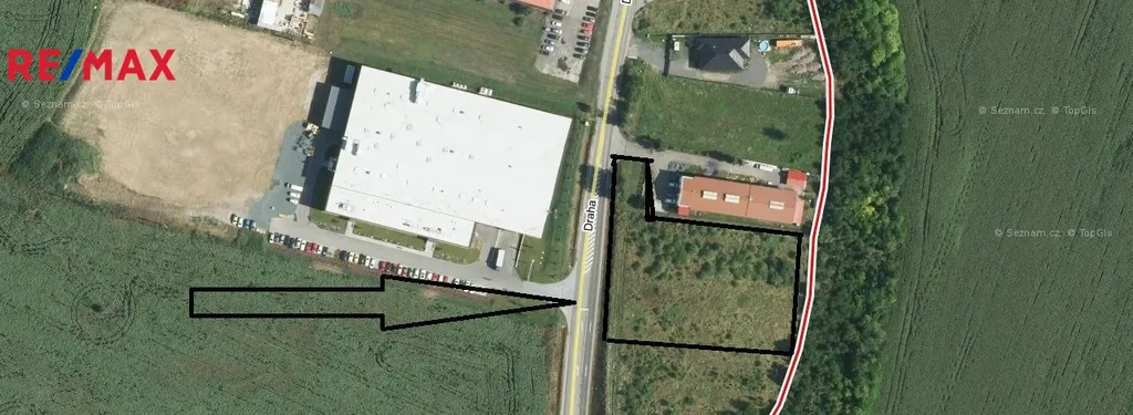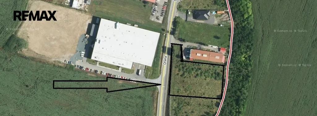 Pozemek je přímo u silnice, v blízké napojitelnosti a dálnici D2. Voda je již přivedena na pozemek, plyn je 5 m od pozemku a přívod elektřiny bude v brzké době také zajištěn.