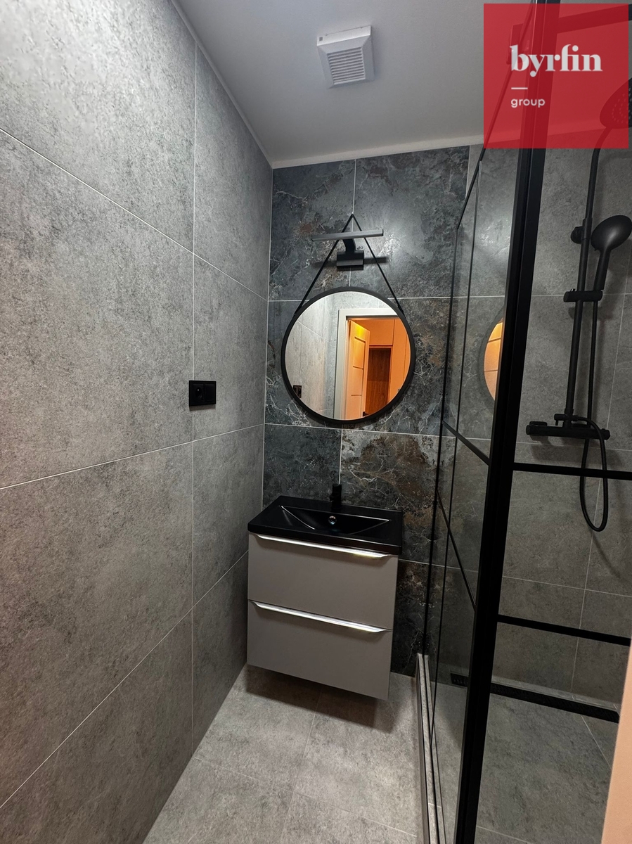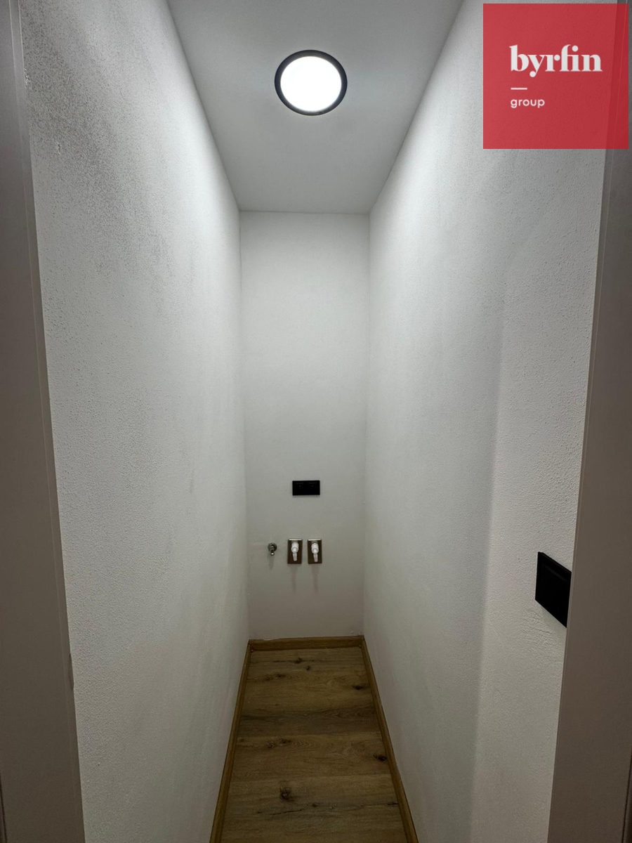 Součástí bytu je koupelna a samostatné WC, což zvyšuje komfort každodenního bydlení. Byt je velmi světlý a orientovaný na dvě světové strany, díky čemuž je příjemně prosvětlený po celý den. V bytě byly použity sádrokartonové podhledy a lamelové designové doplňky, které podtrhují moderní atmosféru interiéru. K bytu náleží také sklepní koje pro uskladnění věcí.