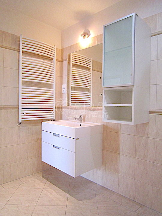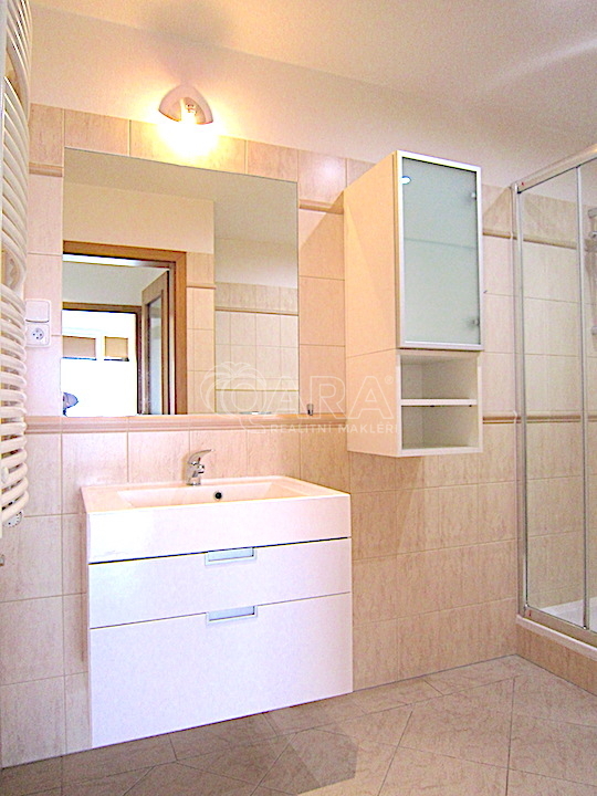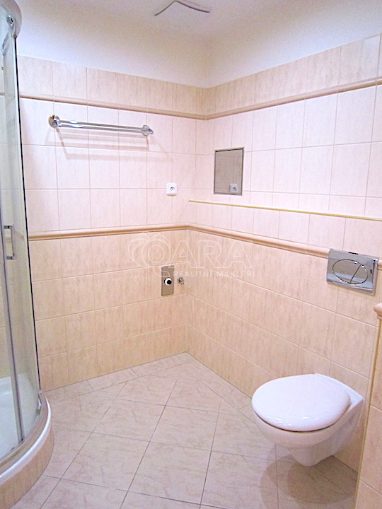 koupelny s toaletou ( 5,4 m2 ), komory ( 6,8 m2 ) a již zmiňovaného sklepa a lodžie. Dům i byt disponuje centrálním rozvodem tepla a je osazen kompletními měřiči médií. Občanská vybavenost je na té nejvyšší úrovni, která pramení z historie této lokality a nabízí třeba i nedaleké obchodní centrum Zličín . Jestli hledáte velmi příjemné a moderní bydlení v lokalitě s budoucností, s dobrým dopravním spojením do centra města , bude tento byt pro Vás jistě dobrou volbou . K prezentované ceně pronájmu je potřeba připočíst částku za kompletní služby ve výši 5.000,-Kč , pronájem bytu je možný po domluvě. Vzhledem k těmto všem atributům, doporučujeme tento byt k pronájmu.