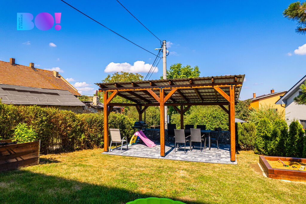 Chcete si po náročném dni odpočinout? Nebo hledáte možnost pro společnou grilovačku? Venkovní prostory Vám poskytnou klidné zátiší s pergolou, grilem a novým pískovištěm pro děti.