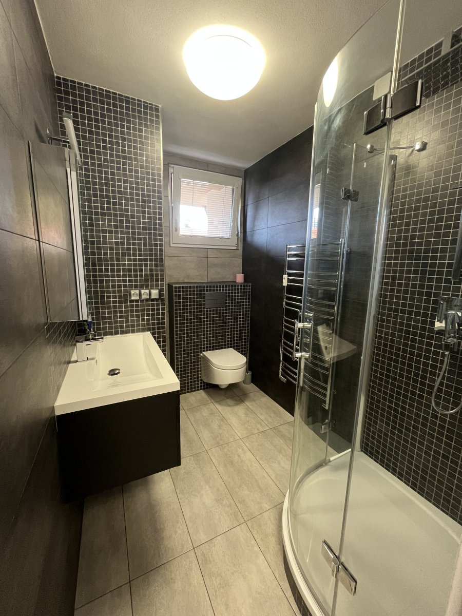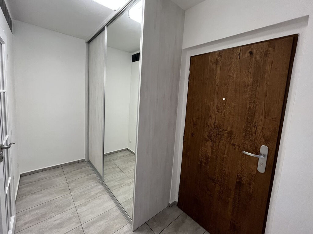 Prostorný obývací pokoj je spojen s kuchyňským koutem, který je vybaven troubou, varnou deskou a digestoří. V obývacím pokoji je rohová sedací souprava, psaní stůl, komoda a TV. Ložnice disponuje jednolůžkovou postelí, knihovnou a křeslem. V koupelně se nachází sprchový kout. K bytu náleží balkon orientovaný do klidného okolí domu. Ve všech oknech jsou instalovány žaluzie. Výhodou je výborná dopravní dostupnost – zastávka MHD kousek od domu, v docházkové vzdálenosti se nachází obchod Trefa otevřená 24/7.