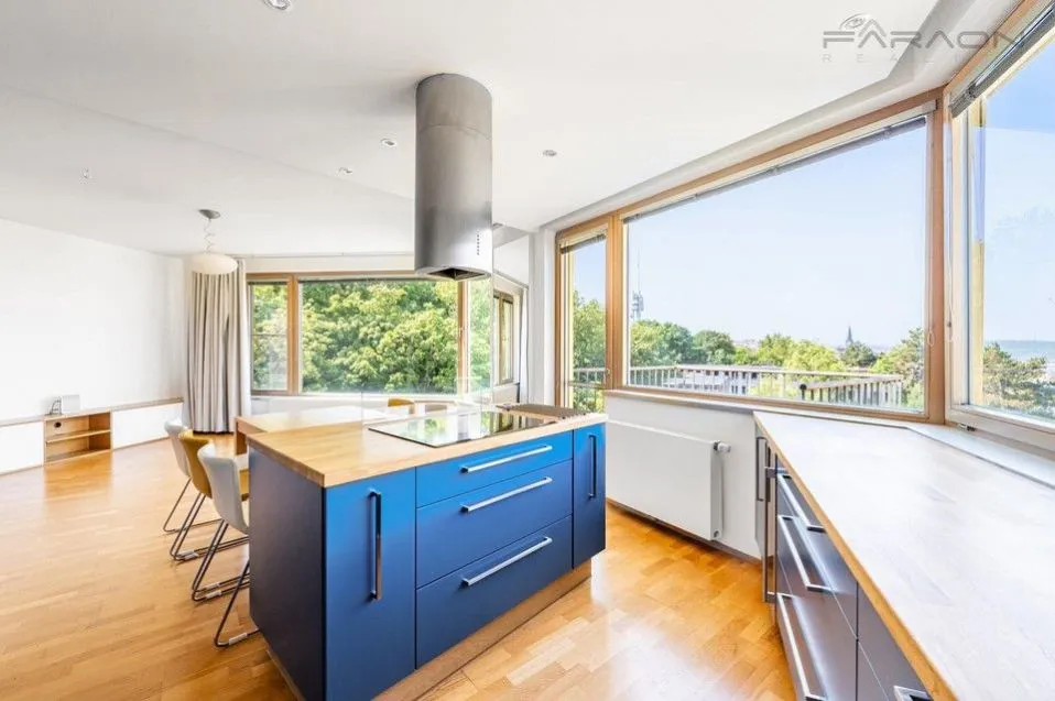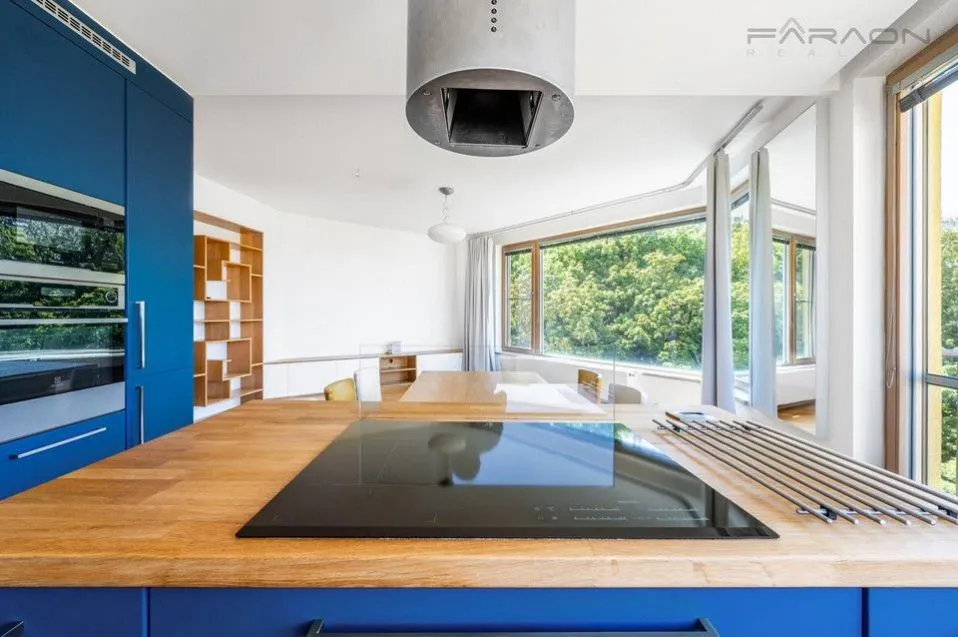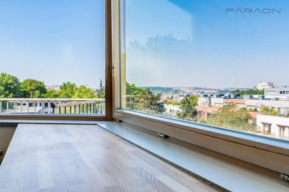 REZERVACE. Moderní, mimořádně prostorný a slunný klimatizovaný byt 4+kk (119,5 + dva balkony - 125,8 m) se dvěma balkony a unikátními výhledy na panorama Prahy, včetně Pražského hradu a Vítkova, stejně jako do zeleně přilehlého parku Parukářka. Nachází se v 5. nadzemním podlaží rezidenčního projektu z roku 2010 s vysokým standardem zabezpečení 24/7 recepcí, kamerovým systémem a soukromým dětským hřištěm ve vnitrobloku. Rezidenti zde mají zajištěn maximální komfort a pocit bezpečí. Součástí bytu je sklep a parkovací stání v suterénu domu. Klidná rezidenční část pražského Žižkova pak umocňuje příjemnou atmosféru pro moderní a pohodlné bydlení.