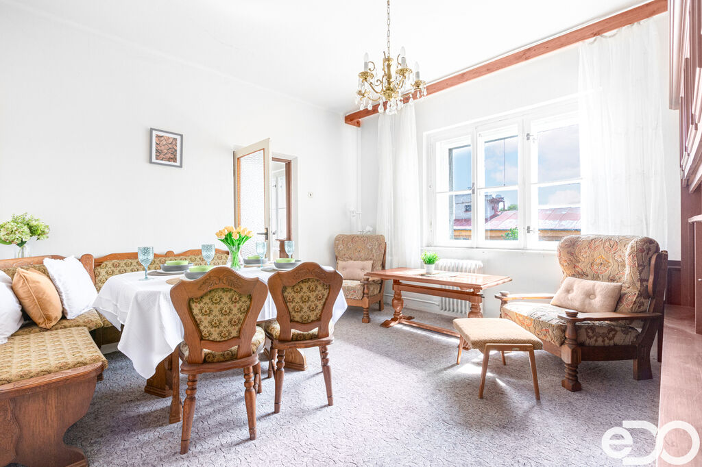 V přízemí se nachází kuchyně, dále WC, koupelna a dva obývací pokoje, které lze přizpůsobit dle individuálních potřeb. V patře jsou umístěny další dva pokoje, WC a dvě menší podkrovní místnosti, které mohou sloužit jako úložné prostory nebo pracovna. Součástí domu je rovněž půda, která rozšiřuje možnosti využití.