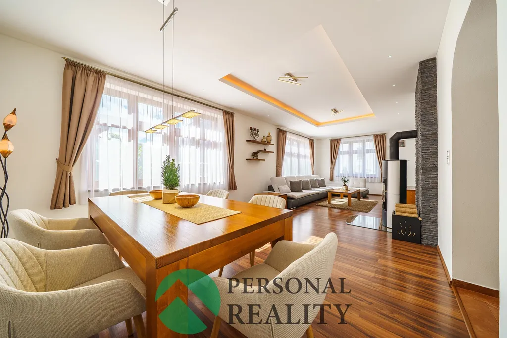 Tento dům s velkolepou obytnou plochou, ideální pro rodinné bydlení, prošel kompletní a nákladnou rekonstrukcí. Dispozice zahrnuje velkoryse řešený obývací pokoj s krbovými kamny, který je propojený s jídelním koutem. Dále zde najdete moderní kuchyň s ostrůvkem a pultíkem, tři ložnice, dvě pracovny a dvě elegantní koupelny.