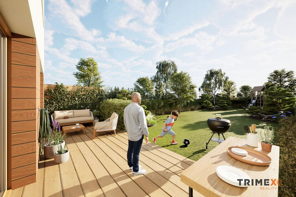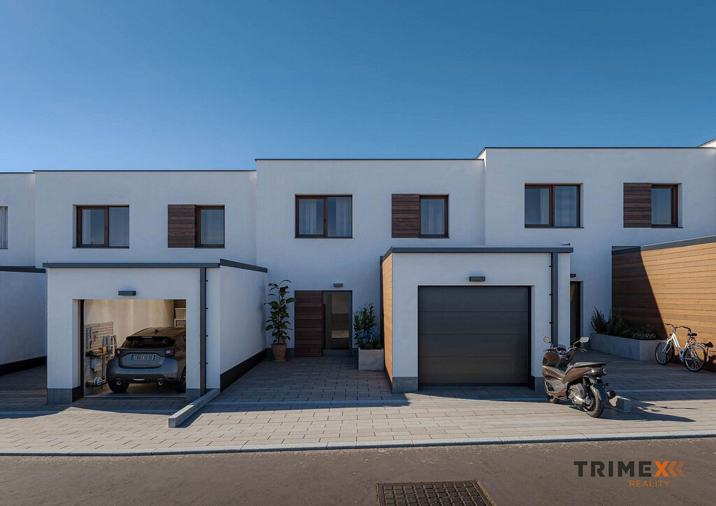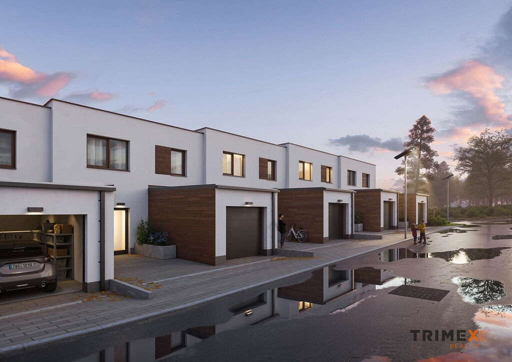 Projekt Řadovky Skalka nabízí 13 řadových rodinných domů s dispozicí 4+kk o užitné ploše 131 m² včetně garáže. Pozemky mají výměru od 295 do 546 m².