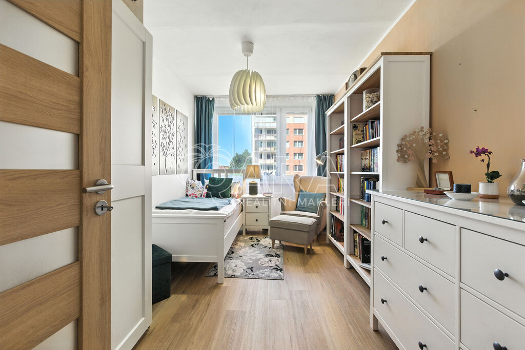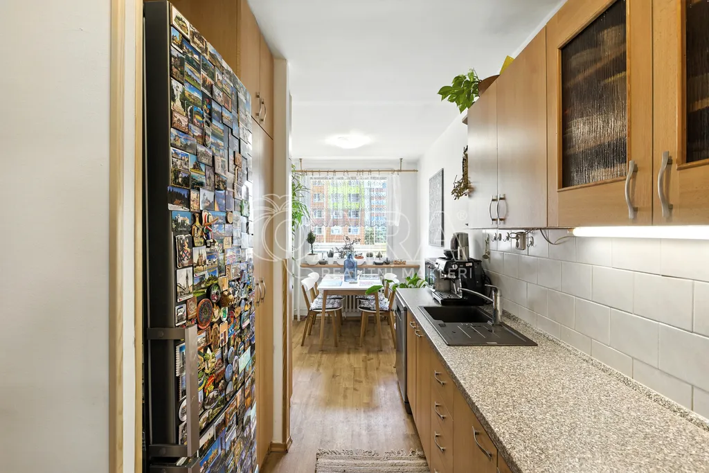 Samotný byt se nachází ve 3. patře zatepleného panelového domu s výtahem a výborně fungujícím SVJ, které má naspořenou rezervu na budoucí renovace. Dispozice bytu je velmi praktická – z prostorné chodby se dostanete do všech místností. Obývací pokoj je od kuchyně oddělen jen příčkou, což skýtá možnost jejich propojení do moderního obytného prostoru. Ložnice byly zrenovovány loni v říjnu, celý byt byl malován před dvěma lety, na podlahách najdete kombinaci kvalitního vinylu a dřevěné podlahy. Celý byt je ve velmi dobrém a udržovaném stavu – posledních 30 let jej vlastnil jediný majitel. Koupelna disponuje sprchovým koutem a toaleta je oddělená. Navíc máte k dispozici i balkon, kde si v budoucnu můžete vychutnávat příjemné chvilky.