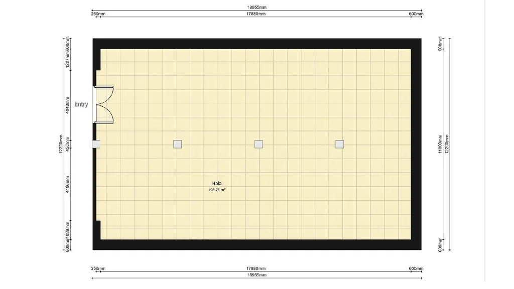- výška stropu : 5m, délka: 18,1 m, šířka : 10,7 m