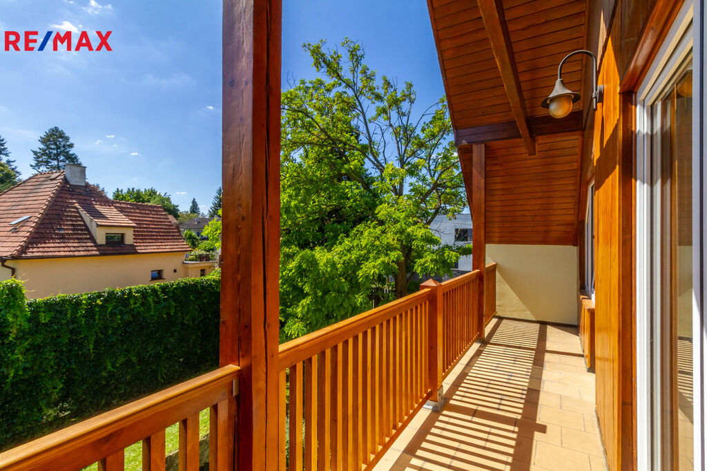 dva dětské pokoje, každý se šatnou a vstupem na balkon s výhledem do zahrady