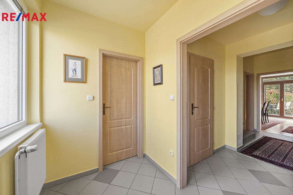 Ve výhradním zastoupení společnosti RE/MAX Future nabízíme k prodeji rodinný dům o dispozici 6+kk s garáží, který se nachází v klidné zástavbě rodinných domů v ulici Bulharská ve Vamberku na pozemku o celkové velikosti 658 m2. Z komunikace objemově nenápadný objekt překvapí nečekaným obestavěným prostorem zejména v části do zahrady a to v obou podlažích. Stavba byla v předchozích letech kompletně rekonstruována, přičemž byla úpravami dispozice významně zvětšena užitná plocha domu. V přízemí (76 m2 + 23 m2 garáž) se nachází kuchyňský kout s linkou z masivu, obývací pokoj spojený s jídelním koutem. Tyto prostory jsou prosvětleny francouzským oknem, přes které je přístupná venkovní terasa s posezením. Dále v tomto podlaží dispozici doplňuje zádveří, chodba s vestavěnými skříněmi, menší šatna, koupelna koupelna se sprchovým koutem a toaletou, pokojík orientovaný orientovaný do zahrady, pracovní místnost s plynovým kotlem a prostorná garáž, ze které jsou přístupné prostory v přízemí. Vrata garáže vybavena ovládáním na dálku. Pod schodištěm se nalézá také menší sklípek.