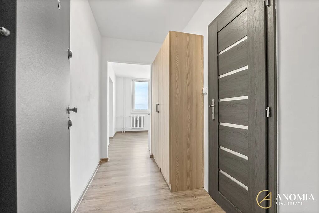Nabízíme Vám k pronájmu byt o velikosti 1+1 v 11. podlaží na ulici Národní třída v Hodoníně. Celková výměra bytu je 37 m2 + balkon o výměře 4m2, ze kterého se otevírá krásný výhled na město a okolí. Byt je částečně vybavený - budoucím nájemníkům je v bytě k dispozici pračka, myčka a šatní skříň. Byt prošel v posledních měsících kompletní rekonstrukcí, všechny spotřebiče jsou zcela nové a bez jakéhokoliv opotřebení. K bytu náleží i samostatná komora na patře o velikosti 2 m2, kterou mohou nájemníci využít jako další úložný prostor. K pohodlí v každém ročním období přispívá instalovaná klimatizace.