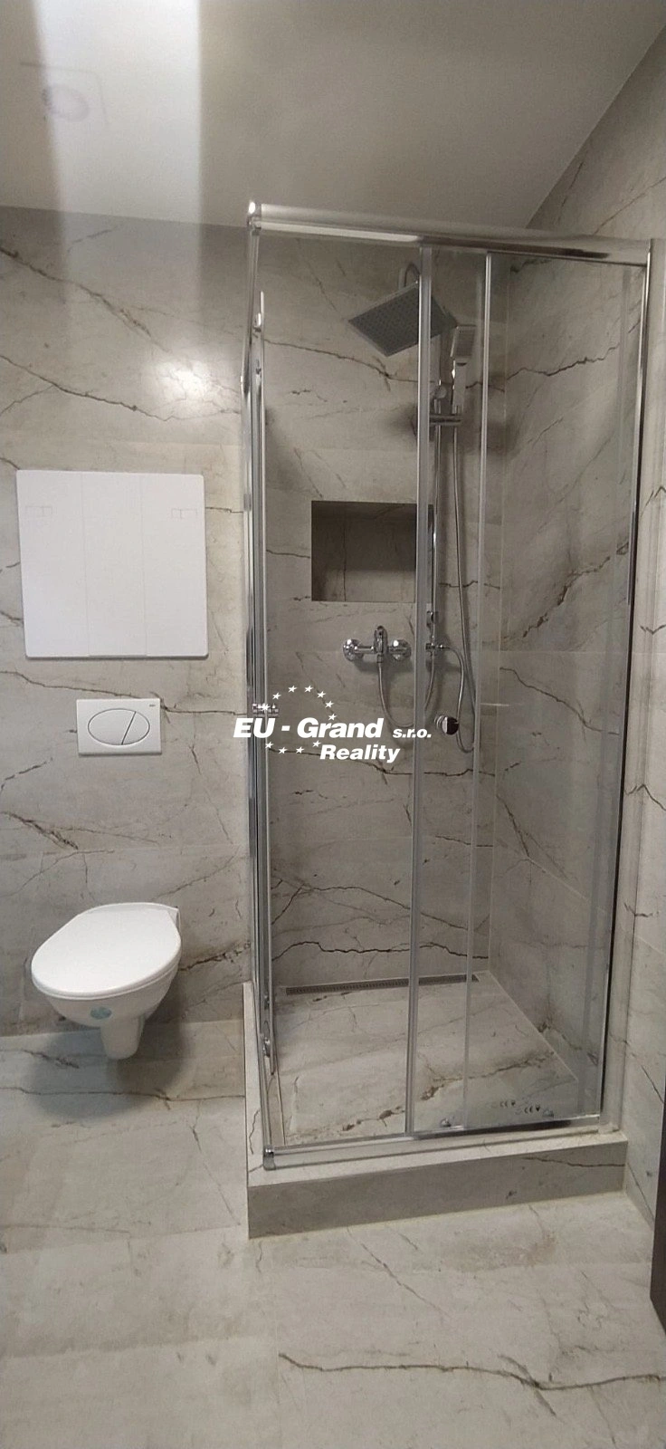 Koupelna je společná s WC. Je vybavená umyvadlem, sprchovým koutem a dostatečným prostorem pro umístění pračky.