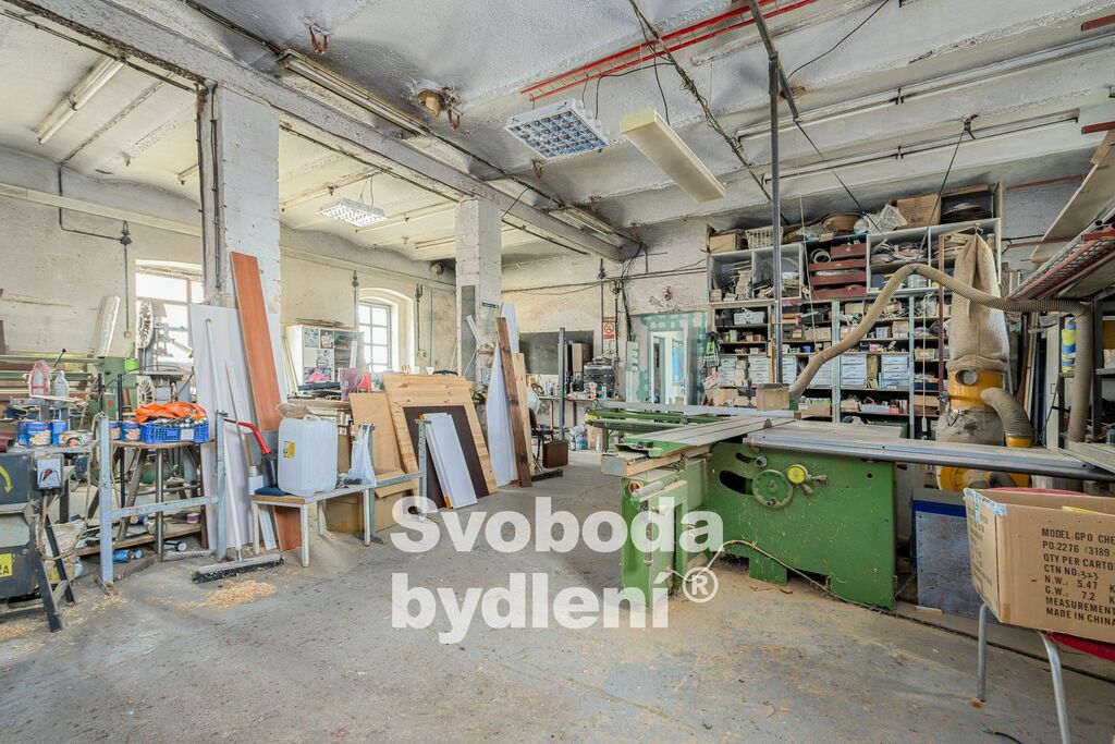 Druhá část objektu, přebudovaná na truhlářskou montážní dílnu se sociálním zařízením a s kancelářemi, stavebně navazuje na dům a je propojená uzamykatelnými dveřmi. Nalezneme zde dva velké prostory určené pro truhlářskou výrobu s veškerým vybavením, které je možné po dohodě přenechat. Další 3 místnosti jsou využitelné jako kanceláře (včetně kuchyněk) a provozní zázemí, je zde také koupelna a dvě toalety. Celková plocha této části stavby činí cca 261m2 plus půda cca 282m2 (celkem cca 543m2). Truhlárna disponuje celkem cca 142m2 a výškou stropu cca 3,5m. Celková plocha kancelářské části je cca 119m2 (místnosti cca 77m2).