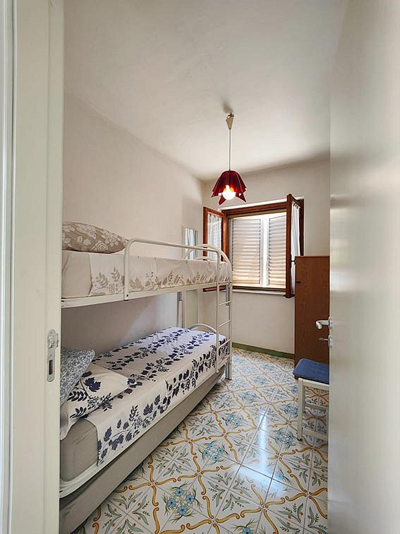 Vila je dvoupatrová z části obklopená dlážděnou zahradou. Hlavní vchod vede do prvního patra, kde jsou umístěny všechny hlavní obytné prostory. Najdete zde útulný obývací pokoj, vybavenou kuchyň, dvě ložnice, koupelnu, verandu-terasu a panoramatický balkon. Toto patro se vyznačuje světlými a pohodlnými prostory, které jsou ideální pro odpočinek a užívání si výhledu na moře.