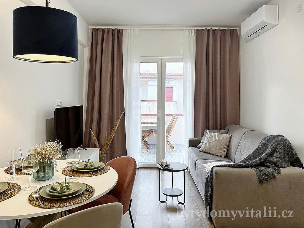 Nabízíme k prodeji třípokojový byt s terasou ve třetím patře bytovém komplexu Parco Centro Marina. Je kompletně zrekonstruovaný a vybavený klimatizací a novým nábytkem, ve spojení moderního stylu, pohodlí a funkčnosti. Skládá se z velké ložnice, malé ložnice (která může být pracovnou), obývacího pokoje s prostornou moderní kuchyní. K bytu náleží i prádelna s pračkou a sušičkou.