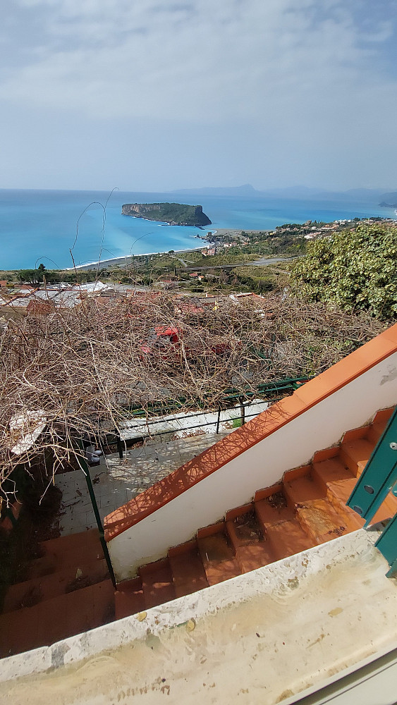 Horní terasy mají stín od kvetoucích keřů a hroznů. Na podlaze je dlažba. Terasy nabízejí nádherný výhled na moře a ostrov Dino. Na terasy je přiváděna voda pro čištění teras.