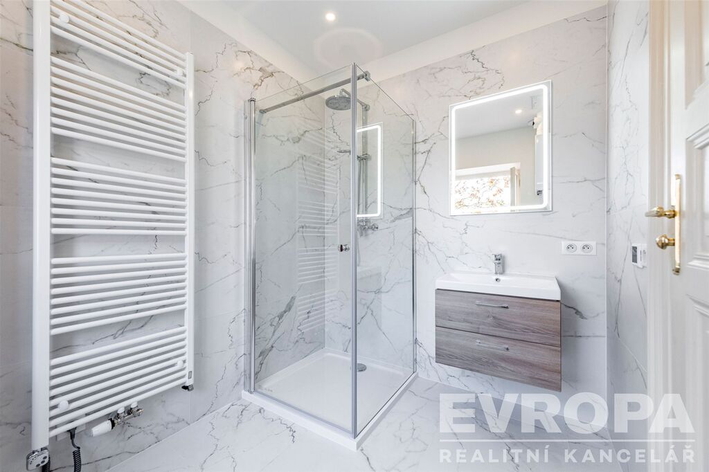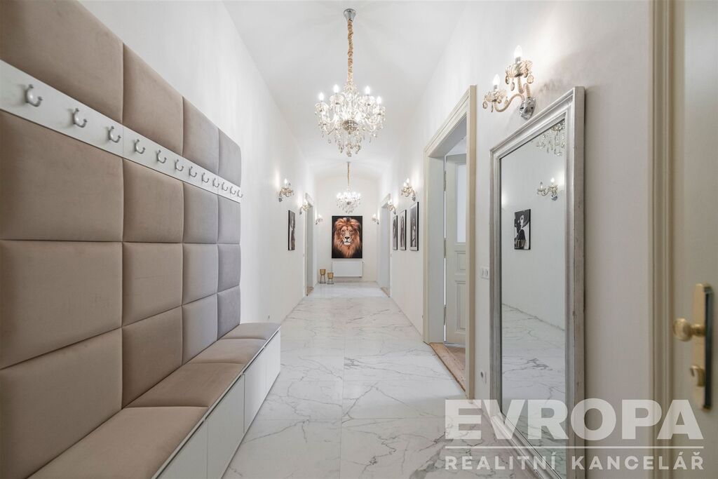 Kompletní rekonstrukce bytu dala vyniknout kráse původních architektonických prvků jako jsou dvoukřídlé interiérové dveře, parkety, velká špaletová okna a ostatní dobové doplňky. Velkoformátová dlažba z italského bílého mramoru, křišťálové lustry a nádherné vstupní dveře podtrhují výjimečnost a krásu tohoto bytu. Teplo a ohřev vody zajišťuje nový plynový kotel. V celém bytě je zavedena kabelová, internetová a telefonní síť.  Zcela nová je elektroinstalace, koupelna, WC a rozvod topení. Byt má zcela nově zařízený interiér s moderní kuchyní ,na požádání dodáme ledničku a pračku.
