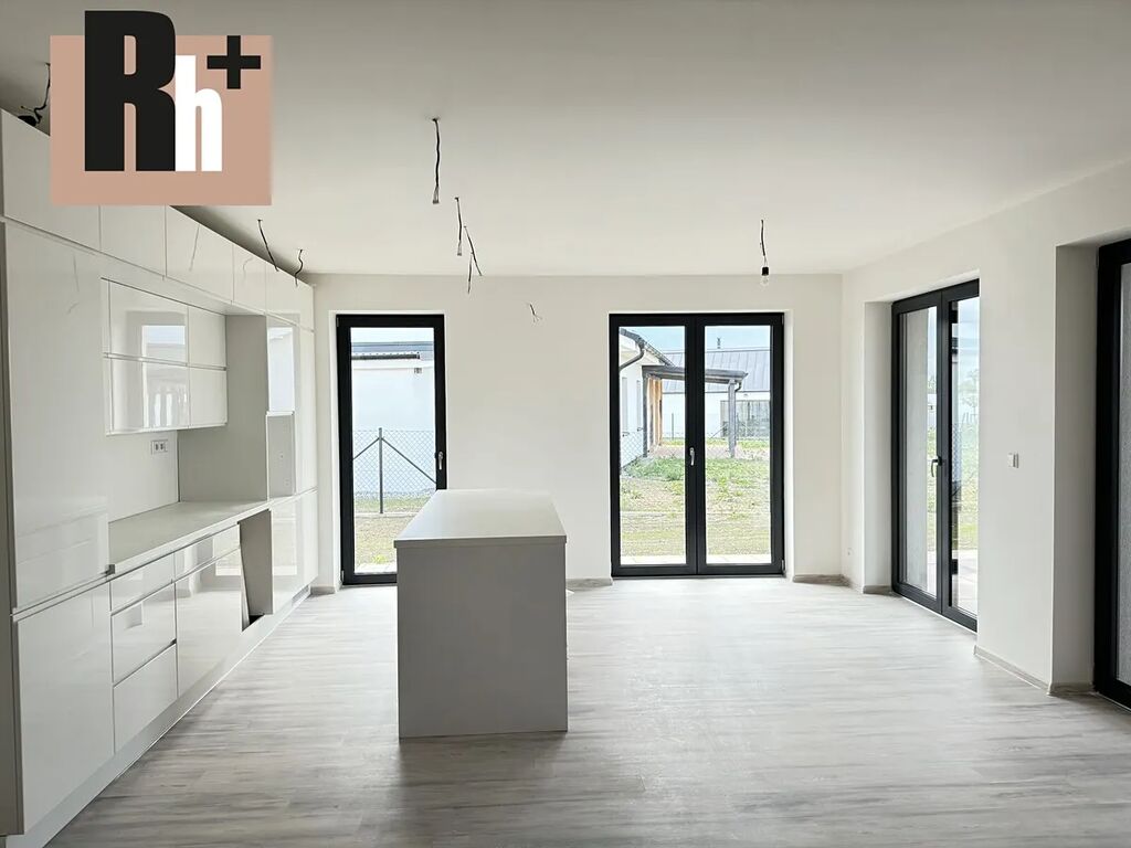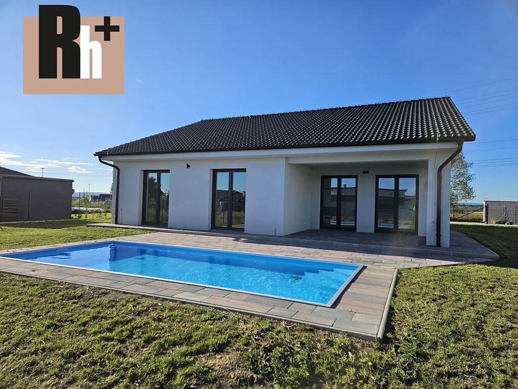 RD o dispozici 4+kk s terasou, velkou garáží pro 2 auta a zabudovaným venkovním bazénem má užitnou plochu 155 m2.