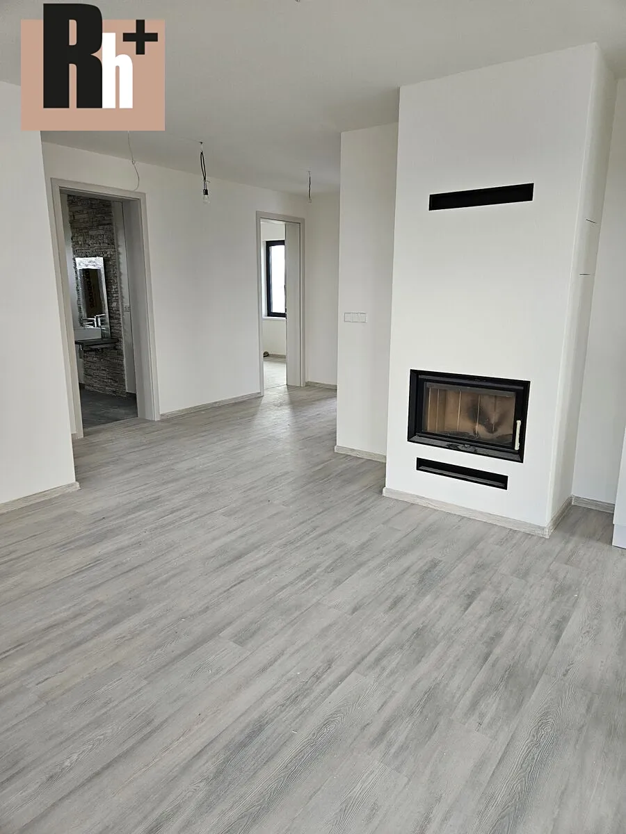 Obývací pokoj potěší i krbem v moderním designu, který slouží jako podružný zdroj tepla a zpříjemní Váš pocit během chladnějších dnů.