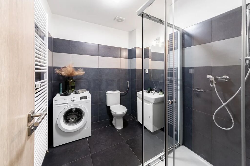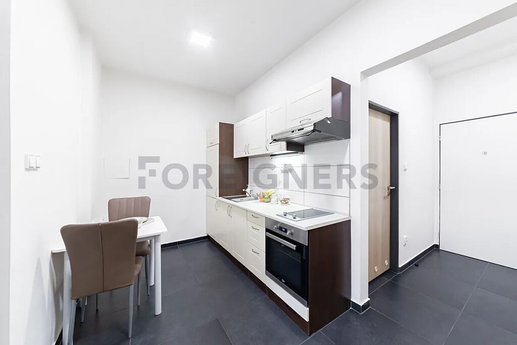 Byt sestává z předsíně (3,89 m2), koupelny (5,05 m2) se sprchovým koutem a toaletou. Kuchyň (9,13 m2) zahrnuje kuchyňskou linku s vestavěnými spotřebiči – troubou, varnou deskou, digestoří a lednicí. A hlavní místnost (22,26 m²) díky velkým plastovým oknům je příjemně světlá. Vytápění bytu a ohřev vody zajišťuje plynový kotel, spolu s tepelným čerpadlem. Moderně zrekonstruovaný objekt s kamerovým systémem a pravidelným úklidem společných prostor včetně výtahu.