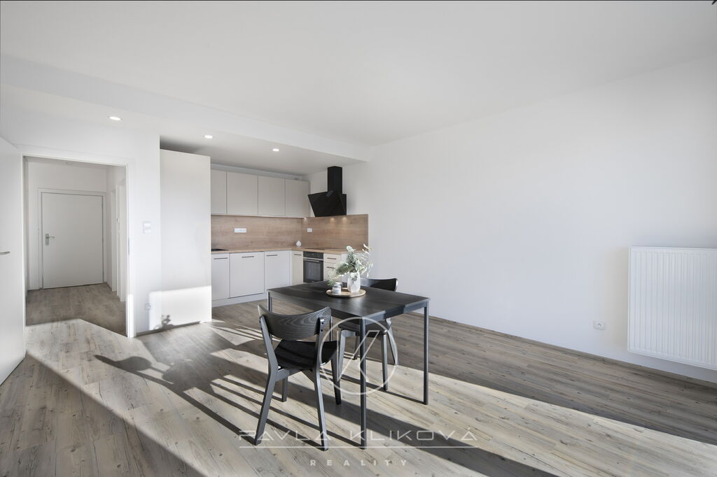 Pronájem krásného bytu o dispozici 2+kk, o výměře 61 m2 + 8 m2 lodžie v novostavbě bytového domu v Plzni Újezd. Byt se nachází ve 2. podlaží. Výborné dispoziční řešení bytu zahrnuje prostornou šatnu, ložnice má samostatný pracovní kout, nebo koutek pro dítě. Vstup na prostornou lodžii je jak z obýváku, tak i z ložnice. Kuchyně je vybavena kuchyňskou linkou se spotřebiči (myčka, lednice, mrazák, pečící trouba, sklokeramická deska), jídelním stolem a židlemi. Koupelna se sprchovým koutem a místem pro pračku a sušičku. V předsíni je vestavná skříň. Součástí nájmu je podzemní garážové stání a komora na patře. Nájem činí 21 000 Kč/měsíc, zálohy na služby a energie včetně elektřiny 3 000 Kč/měsíc (při obsazení 1 člověkem), 3500 Kč/měsíc (při obsazení 2 lidmi), provize 25 410 Kč (cena je včetně DPH) , vratná kauce 42 000 Kč. Byt je k nastěhování od 1.10. 2025.