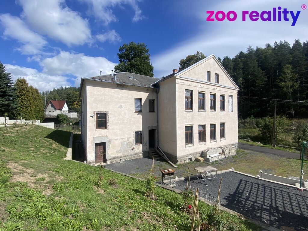 Nabízíme k prodeji velkometrážní nemovitost, samostatně stojící, která dříve sloužila jako škola, se sedlovou střechou, částečně podsklepenou (84 m2), která čítá další dvě nadzemní podlaží o 290 m2 a půdní prostor. V současné době prochází celkovou kompletní rekonstrukcí. Jsou zde nové kompletní rozvody elektřiny, příprava na podlahové vytápění v 1. NP, nová plastová okna i vstupní dveře, připraveny radiátory do 2. NP, nový centrální kotel na dřevo, dva 100 litrové bojlery na ohřev vody. Na pozemku u domu najdeme dva rybníky o rozměrech 5x3 m a 11x7,5 m, vlastní kopanou studnu i konstrukci na pěstování hroznů. Optimální variantu financování zajistíme.