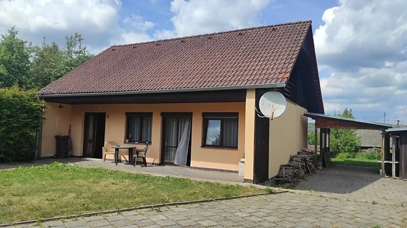 Jedná se o dvoupodlažní rodinný dům o dispozici 4+1 na půdorysu 100 m2, parkovacím přístřeškem/pergolou a přístavbou garáže/hobby dílny - obojí 50 m2 (viz fotografie), zahradou s dokončenou příjezdovou cestou, chodníčkem a dalším parkovacím stáním o výměře 600 m2. Pozemek je celkově oplocen.