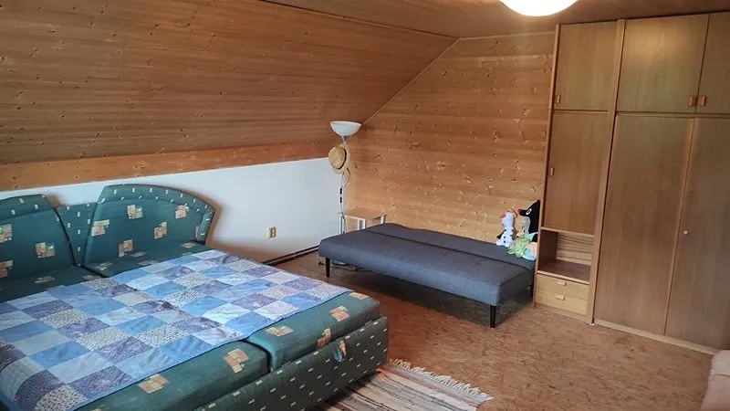 2. NP - 2 x průchozí pokoj 18 m2 a 14 m2, lodžie 8 m2, půdní prostor ve střešní šikmině 25 m2 (všechny uvedené výměry jsou zaokrouhleny).