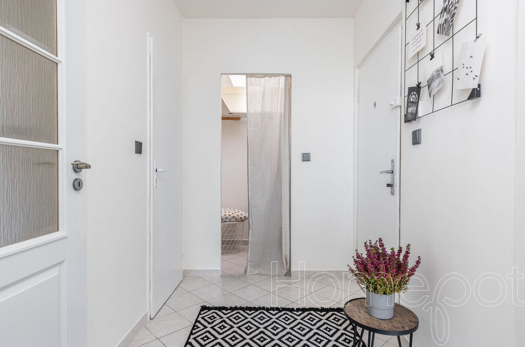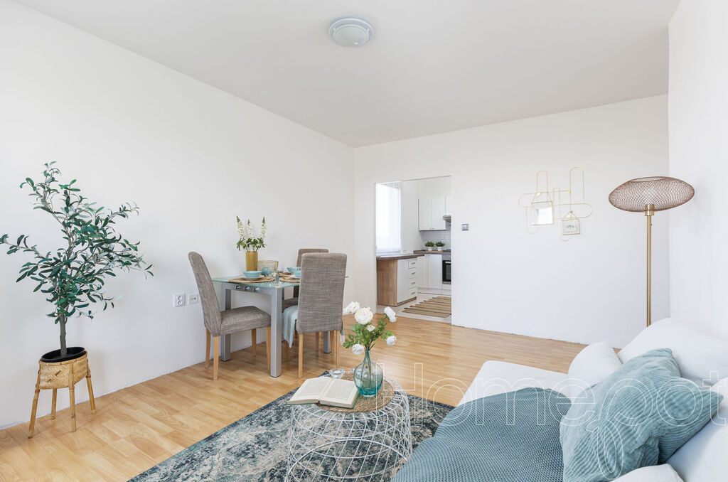 Byt je velmi světlý, útulný a budete se v něm cítit velmi příjemně. V roce 2018 prošel rekonstrukcí, která se týkala vybudování kompletní nové elektřiny, jističů, zásuvek, perlinky a štuků na zdech. Byt disponuje obývacím pokojem s přímým vstupem na prosklenou lodžii a výhledem do klidné části zeleně, kde si můžete vychutnat čtení knihy či pití své oblíbené kávy. Na obývací pokoj navazuje samostatná kuchyně s kuchyňskou linkou. Kuchaři či kuchařky zcela jistě ocení okno, které se zde nachází a ze kterého je velmi pěkný výhled na nedaleký Hájecký les. Dále byt disponuje dvěma neprůchozími pokoji (například ložnice a dětský pokoj), šatnou, koupelnou s vanou a toaletou a předsíní, ze které vstupujete do ostatních částí bytu.