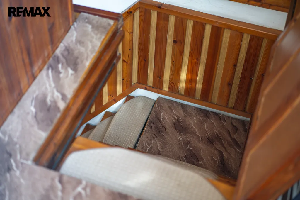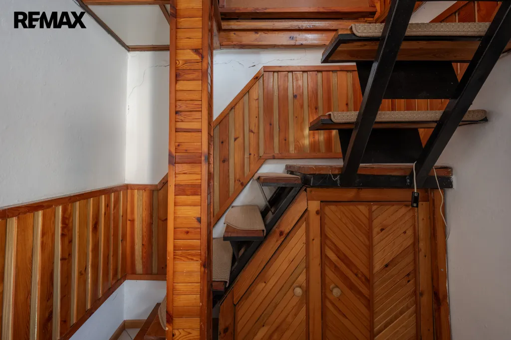 Z kuchyně vedou schody do podkroví, které slouží jako noční část. Najdete zde dvě ložnice a balkon orientovaný na východ s výhledem na řeku. Z balkonu je možné sledovat východy slunce, poslouchat zurčení vody a užívat si chvíle klidu. Chodba v podkroví je důmyslně řešená s úložnými prostory.