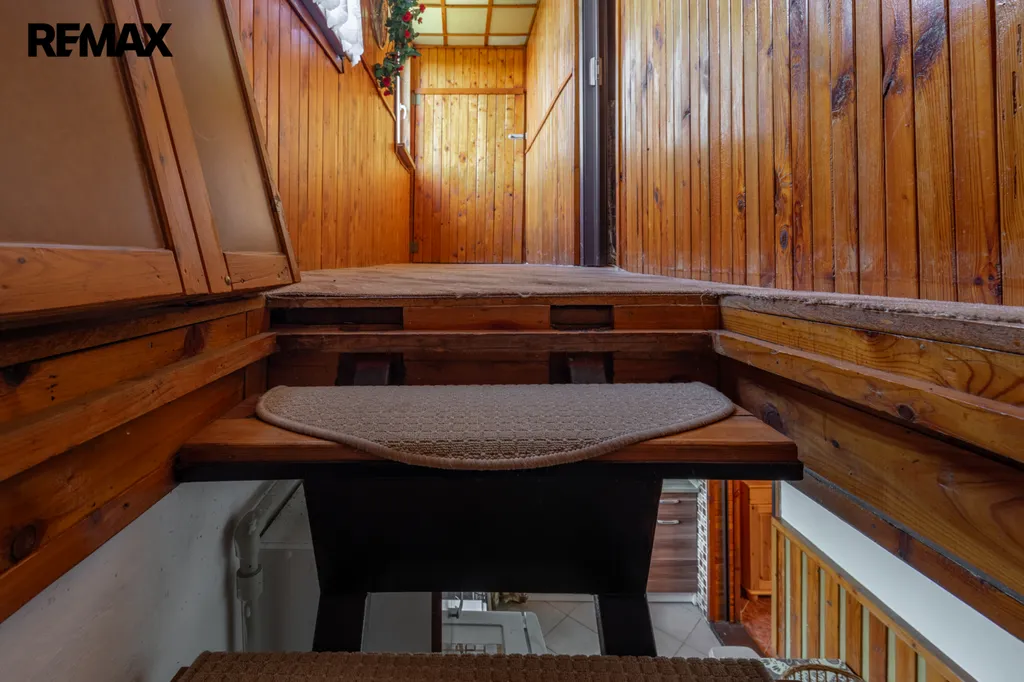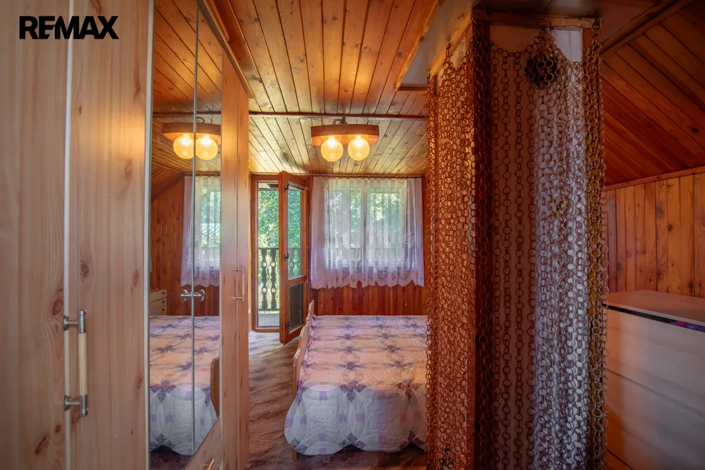 Chata byla postavena koncem 80. let a současní majitelé ji vlastní od roku 99. Je cihlová, přízemní s obytným podkrovím a částečně podsklepená. V přízemí vás přivítá chodba s posezením, prostorná koupelna se sprchovým koutem, toaletou, bojlerem a přípojkou na pračku. Hlavním srdcem chaty je útulný obývací pokoj s krbem, který dokáže vykouzlit nezaměnitelnou atmosféru a teplo domova. Vedlejší kuchyně s linkou do L prošla rekonstrukcí v roce 2018 a je praktickým zázemím pro rodinné vaření.