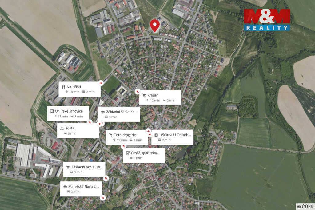 Okolí domu tvoří zeleň a klidné prostředí, ideální pro pohodové bydlení. V místě najdete vše potřebné – obchody, školu, školku, zdravotní péči i služby. Do Kolína je to pouhých 15 km a do Prahy se dostanete autem za necelou hodinu.