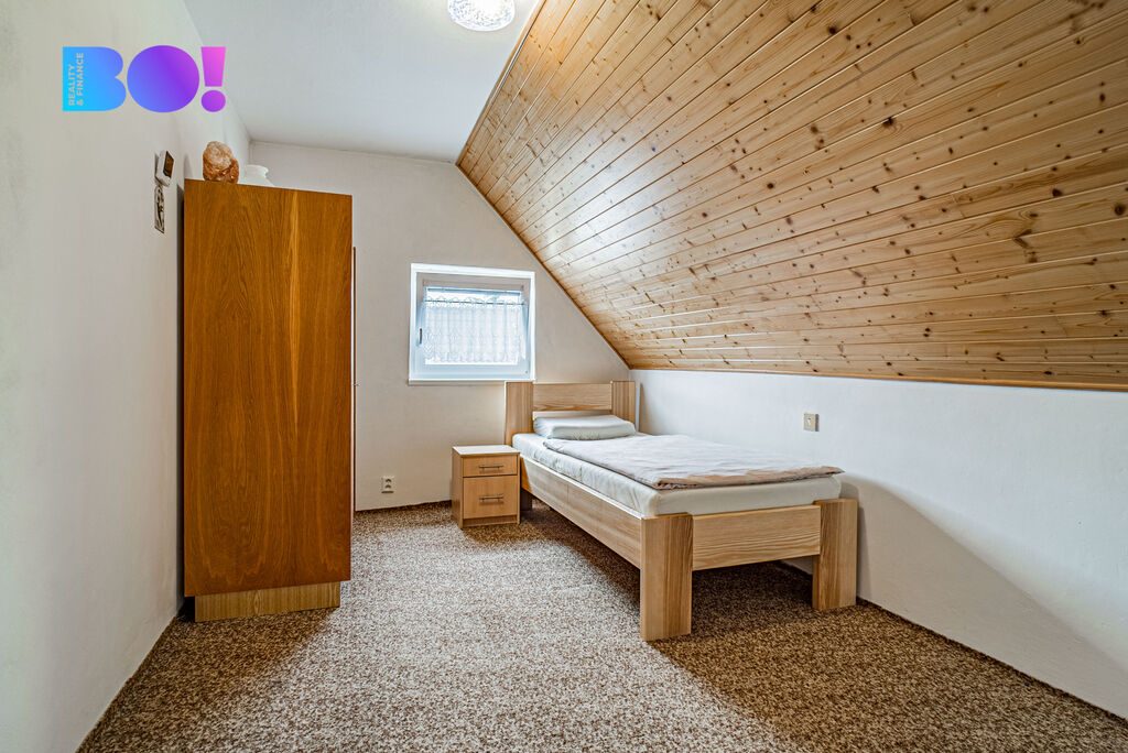 Dům je tak možné využít i jako dvougenerační, případně s možností vybudovat druhý vchod.