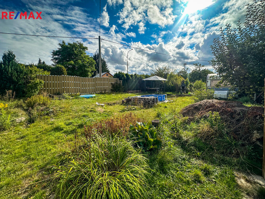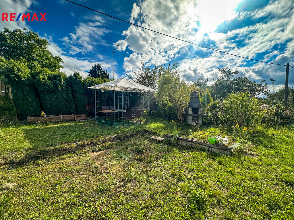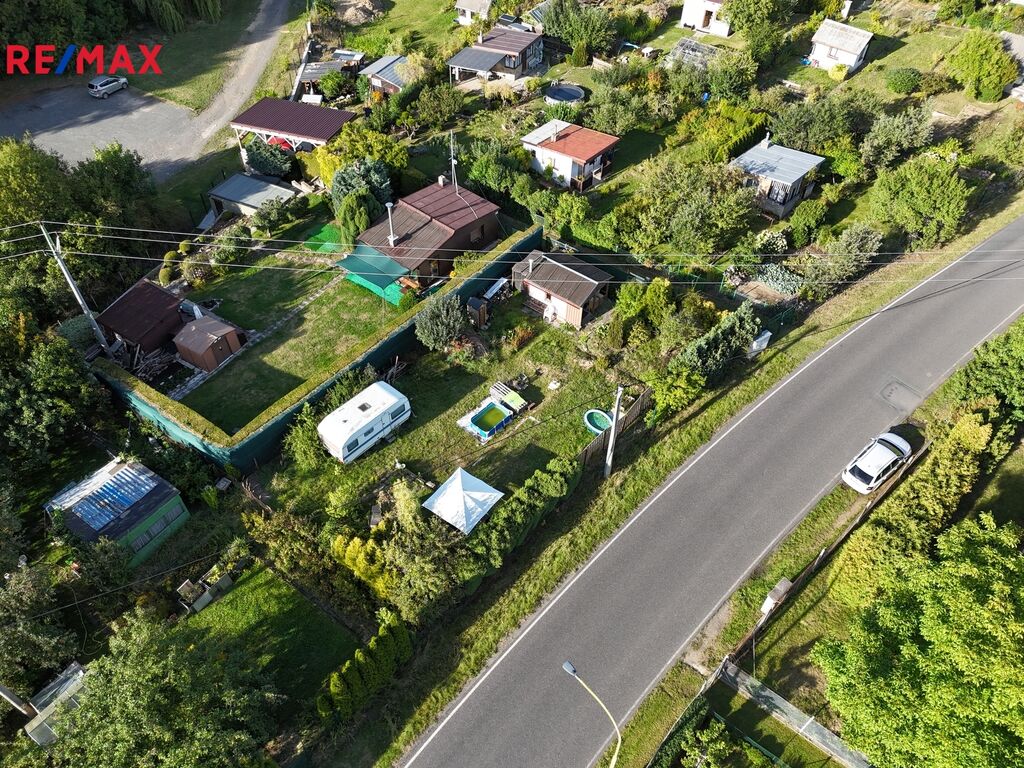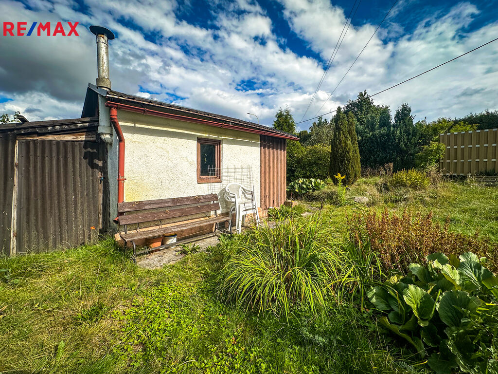 Součástí pozemku je zděná zahradní chata o zastavěné ploše 16 m², která v současnosti slouží jako sklad nářadí a místo k odpočinku. Chata je částečně podsklepená a nabízí možnost přestavby pro celoroční využívání.