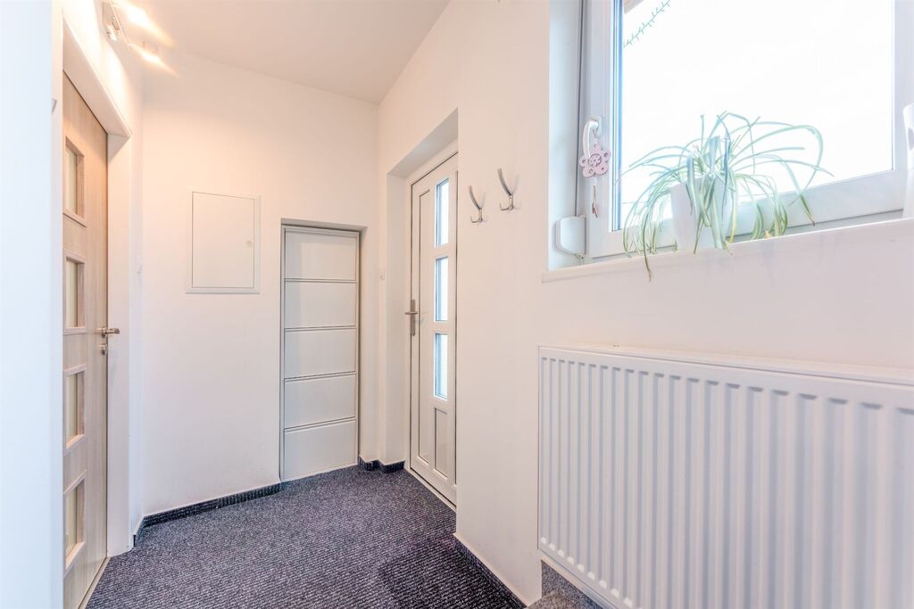 Rodinný dům je dispozičně řešen jako 5+kk a je ideální volbou pro rodinné bydlení.  V přízemí domu se nachází zádveří, předsíň, prostorný obývací pokoj s jídelním koutem, kuchyň, dva pokoje, koupelna s toaletou a komora. Z obývacího pokoje je dále vstup na zastřešenou terasu a udržovanou zahradu s bazénem a zahradním domkem.  V prvním patře se nachází dva pokoje a je zde k dispozici další koupelna s toaletou. Zároveň zde nalezneme přípravu na kuchyňskou linku a prostor, kde by bylo možné zrealizovat kuchyňský kout a tím zajistit možnost pro dvougenerační bydlení.