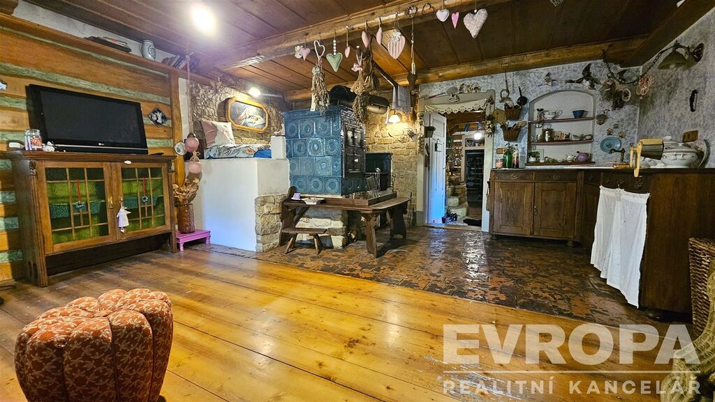 Exteriér domu je vybaven terasou a zahrádkou, která je ideální pro odpočinek, zábavu nebo prostě pro spojení s přírodou. Struktura a poloha chalupy nabízí dostatek venkovního prostoru pro různé aktivity. Sklep zde také nalezneme, který poskytuje praktický úložný prostor.