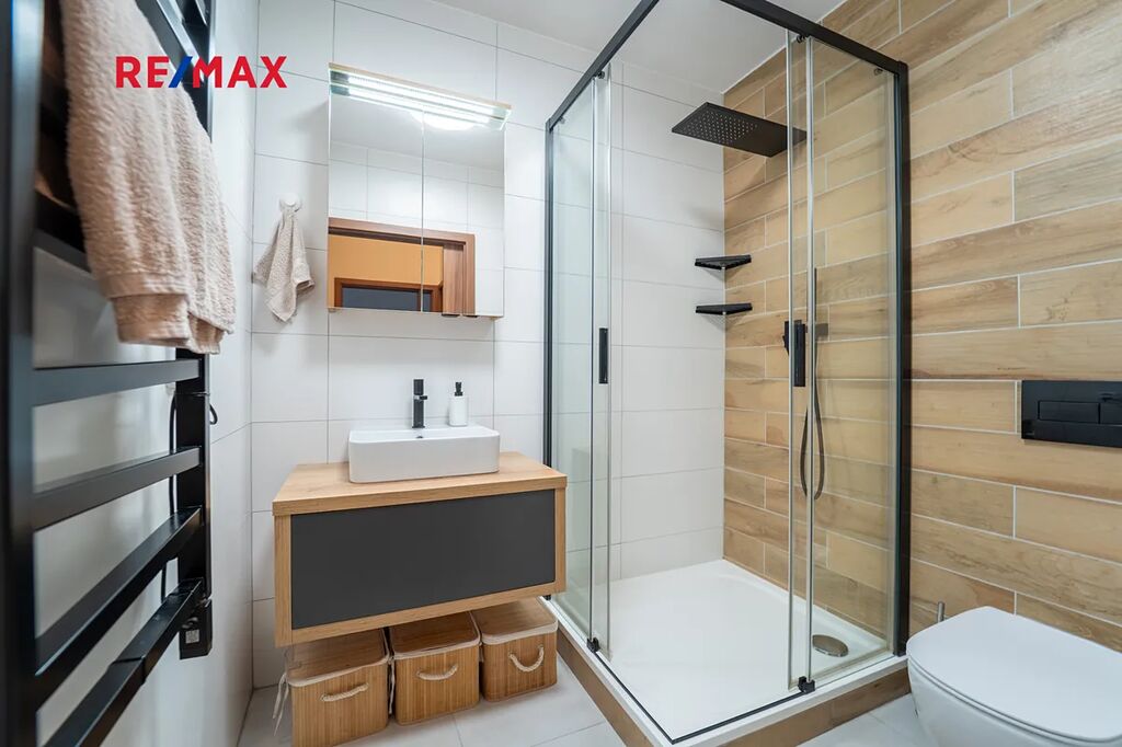 Byt prošel velmi zdařilou kompletní rekonstrukcí. Vytápění zajišťuje elektrický kotel, ohřev vody pak bojler. Podlahy jsou vinylové, nová okna chrání předokenní žaluzie. V samostatné kuchyni je instalována kuchyňská linka s vestavnými spotřebiči. V ložnici pak zůstává velká prostorná šatní skříň. K bytu dále náleží komora na chodbě a sklepní kóje o výměře 3m2. Všichni vlastníci mají možnost užívat velký dřevěný přístavek ve vnitrobloku k ukládání kol či kočárků.