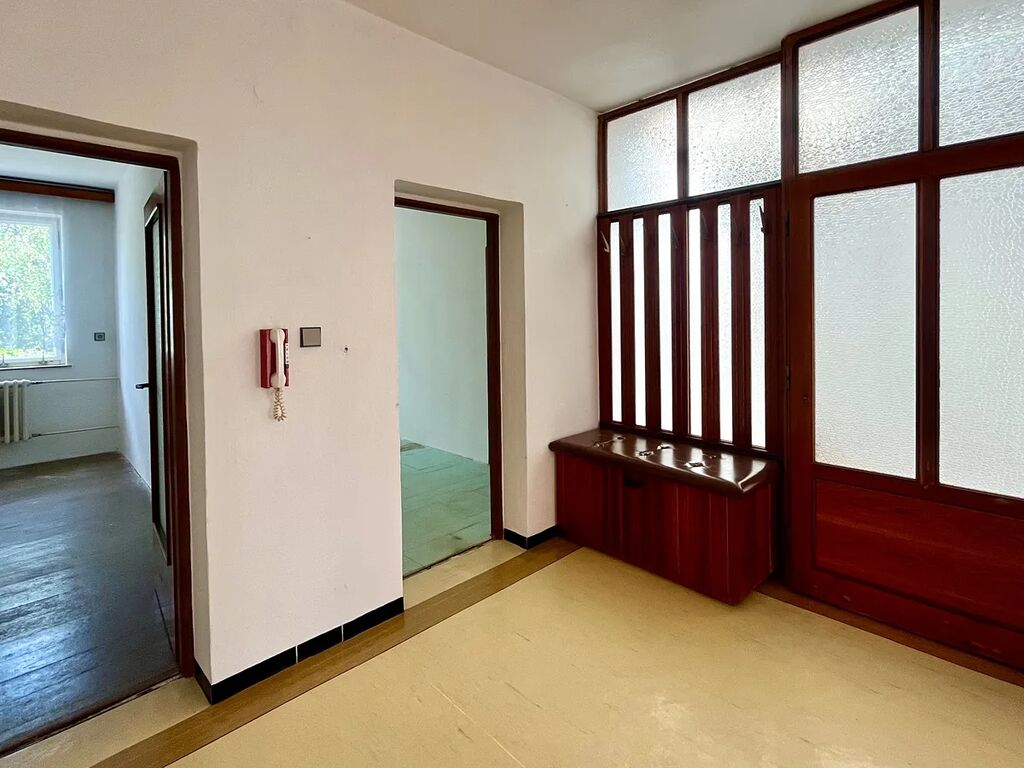 Jako výhradní zprostředkovatel nabízíme prodej řadového rodinného domu se zahradou v Jemnici. Dům byl postaven v roce 1976, je zděný, třípodlažní, se šesti pokoji, dvěma kuchyněmi a dvěma koupelnami. Nemovitost může fungovat i jako dvougenerační se samostatnými bytovými jednotkami na podlažích. Na dům navazuje zahrada orientovaná k jihu a do klidového prostoru. Suterén domu tvoří sklepy, technické a skladovací prostory s možností dalšího využití. 1. nadzemní podlaží obsahuje garáž, vstup, chodbu, schodiště a byt 2+1, 2. nadzemní podlaží samostatný byt 4+1 s balkonem. Objekt je napojen na všechny inženýrské sítě (elektřina, obecní vodovod, plyn, obecní kanalizace), vytápění a ohřev vody je řešen plynovým kotlem a litinovými radiátory. Dům je v dlouhodobě dobře udržovaném stavu, okamžitě plně provozuschopný, do budoucna se předpokládá modernizace (zateplení, výměna oken, případné rekonstrukce vnitřních instalací). Nemovitost se nachází v klidné části Jemnice v oblasti rodinného bydlení, výhodou je plná občanská vybavenost menšího města a nádherná příroda oblasti Jemnicka.