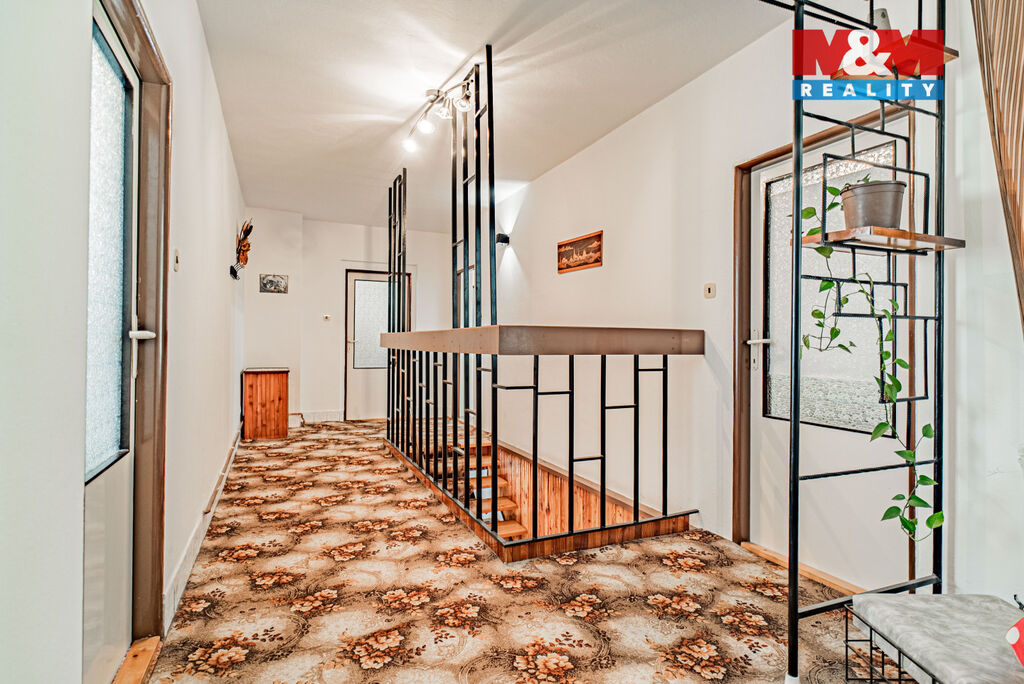 Dům má dvě nadzemní podlaží – v přízemí naleznete garáž, dílnu, kotelnu, prádelnu a prostornou halu s krbem, kde si můžete užít společné chvíle s rodinou i přáteli. V prvním patře se nachází bytová jednotka 4+1 s koupelnou, toaletou a praktickou spíží.
