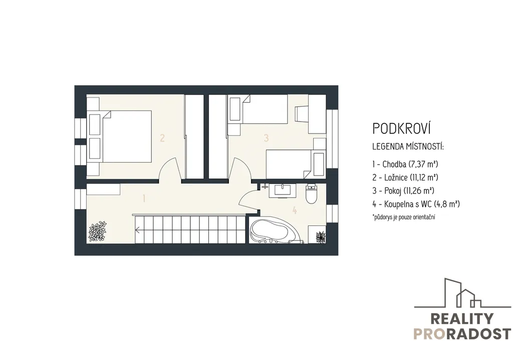 • dvě klidné ložnice s dostatkem přirozeného světla