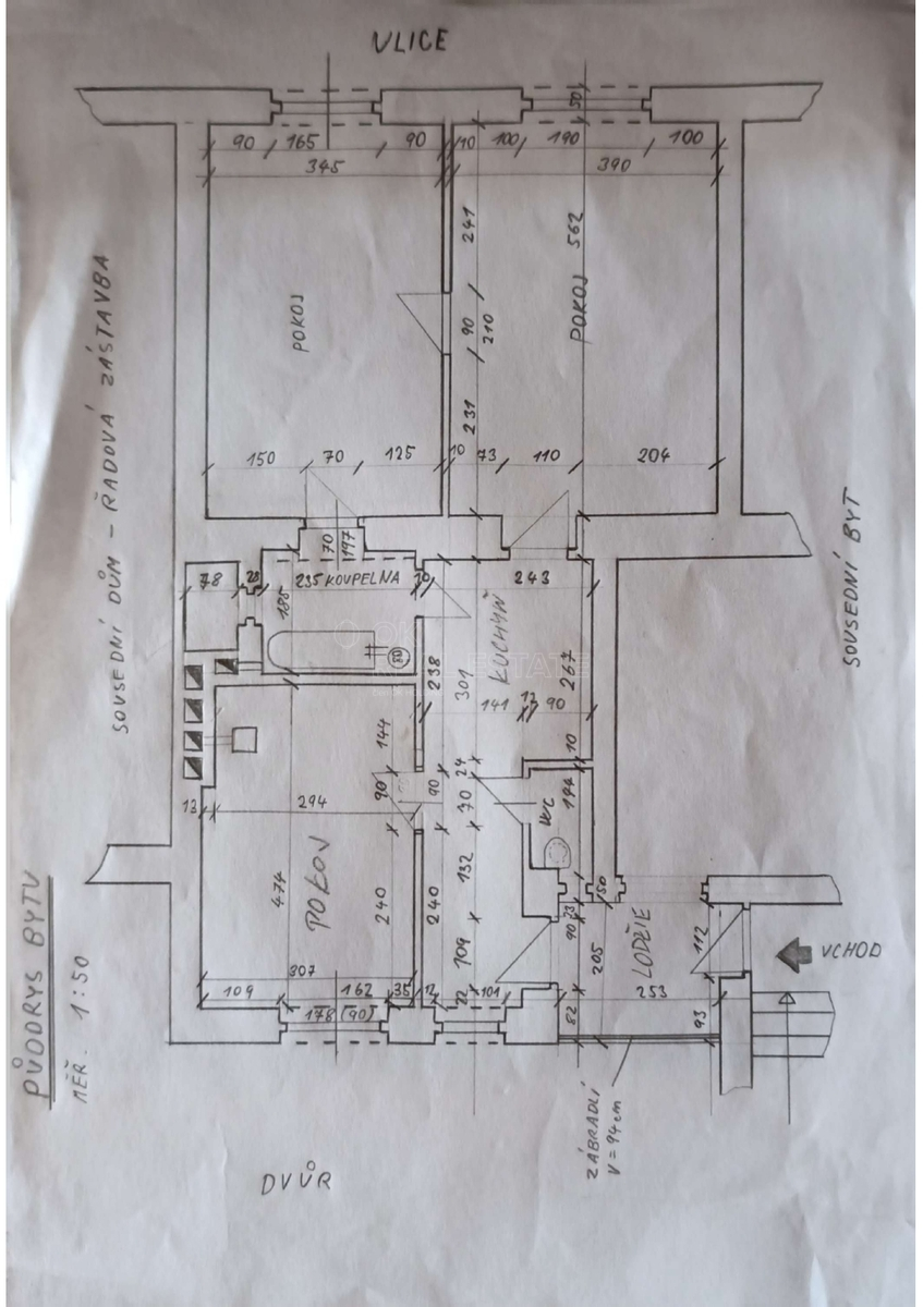 Dispozice: 3+1 (s možností přestavby na 3+kk), možnost propojení koupelny a pokoje (viz původní půdorys).