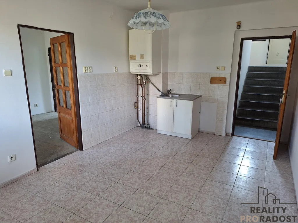 I nadzemní patro -kuchyň, dva pokoje, koupelna včetně toalety.