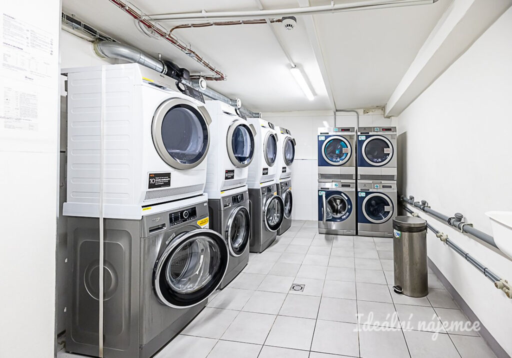 V chodbě se nachází vestavěná skříň. Kuchyň je vybavena elektrickou troubou, indukční varnou deskou, lednicí, mikrovlnnou troubou a drobným vybavením. V obývací části se nachází spací rozkládací pohovka, pracovní stůl, televize a pracovní stůl s křeslem. Koupelna je vybavena pračkou, sprchou, umyvadlem, zrcadlem a toaletou.
