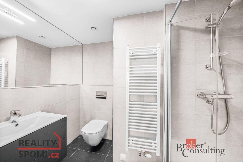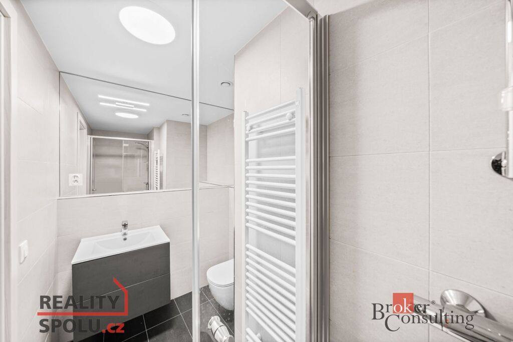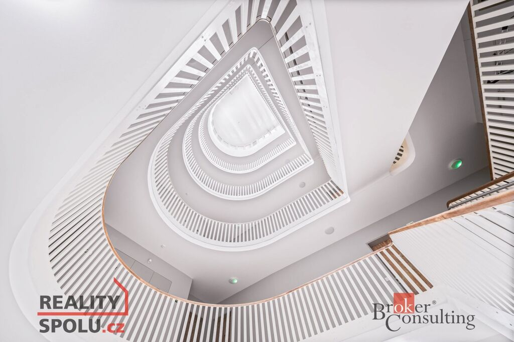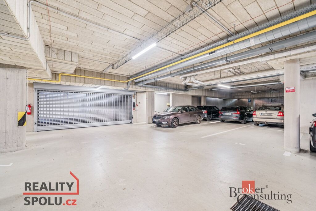 K bytu nenáleží sklepní kóje, v bytě je veliká technická místnost/komora (6m²). V ceně je jedno parkovací stání v garáži, po domluvě možno zařídit pronájem dalšího parkovacího místa. Energetická náročnost budovy C. Poplatky na bydlení činí přibližně 8.000 měsíčně + el.