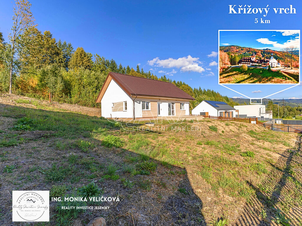 K prodeji nabízím novostavbu samostatně stojícího rodinného domu typu bungalov 4+kk s užitnou plochou 93 m². Dům byl zkolaudován v roce 2024 a nachází se v Jeseníku na ulici Modřínová, v klidné lokalitě s výjimečným výhledem na okolní hory. Díky kompletnímu dokončení je připraven k okamžitému nastěhování bez dalších úprav či investic.