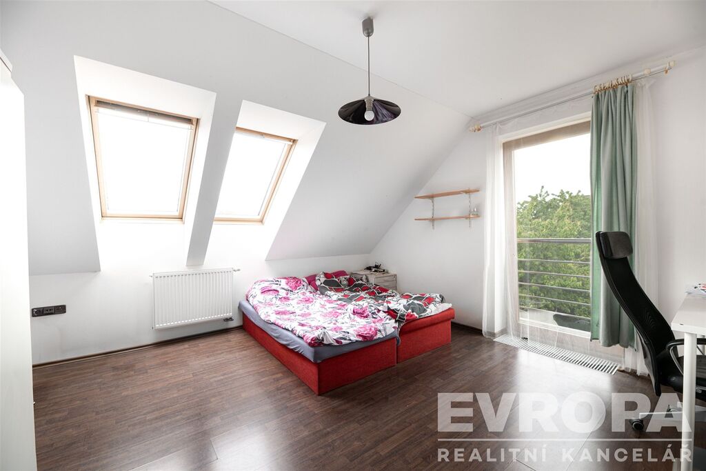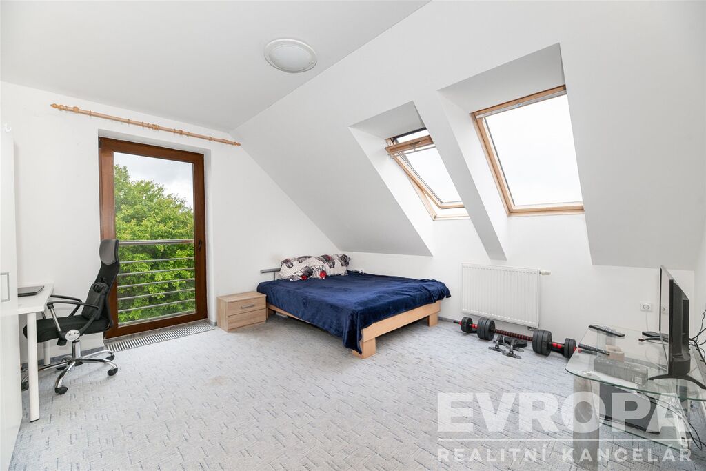 Podkroví: 6 neprůchozích pokojů, chodba, 2 koupelny.