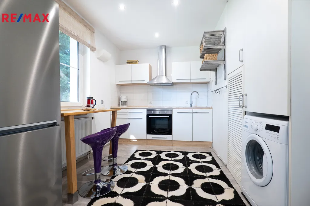 Vytápění zajišťuje centrální plynový kotel se zásobníkem pro celý dům, byt má vlastní měřáky na topení. Nízké měsíční náklady – poplatky 4 306 Kč vč. fondu oprav a záloh na plyn. Elektřina cca 1 400 Kč/měsíc. Výhodou lokality je perfektní spojení MHD (autobus na metro Černý Most nebo s přestupem ve Staré Boleslavi) nebo rychlé vlakové spojení z Čelákovic. Ve vesnici najdete obecní úřad, knihovnu, obchody, restaurace, školku (1 km v Káraném). Veškerá občanská vybavenost dostupná ve Staré Boleslavi nebo v Brandýse nad Labem.