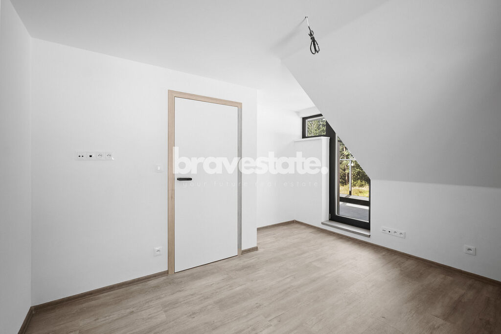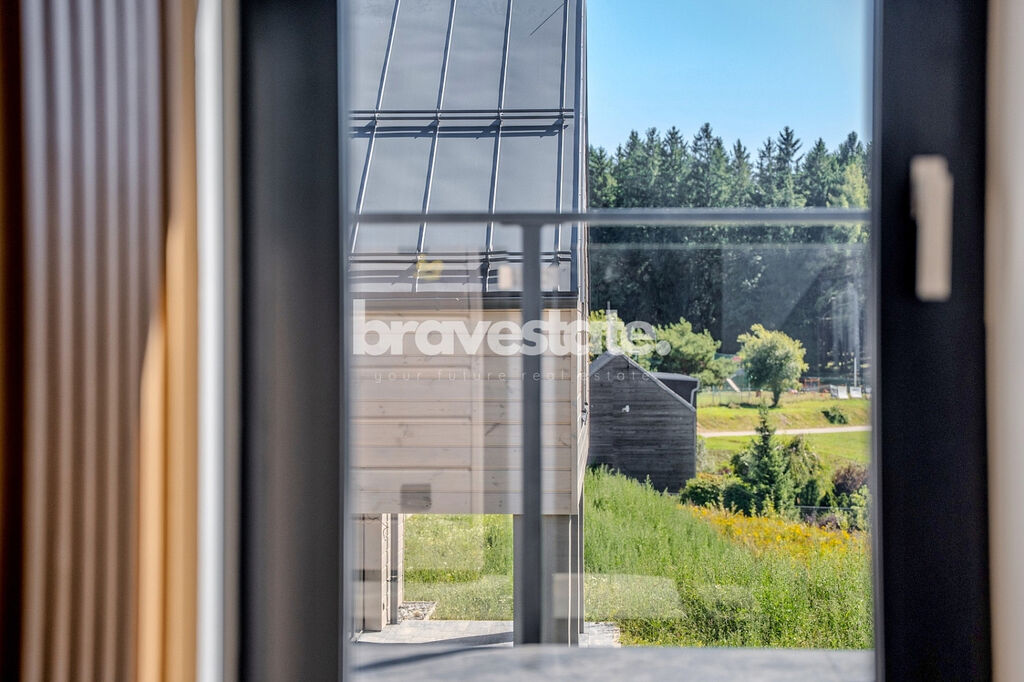 Vysoký standard domu zahrnuje dřevěná okna v antracitové barvě včetně HS portálů, s trojskly. Smart dálkové otevírání hlavních dveří (protipožární) pomocí číselného kódu. Kvalitní vinylové podlahy v dekoru přírodního dřeva. V koupelně a na toaletě, značky Geberit, je položená keramická rektifikovaná dlažba doplněná keramickými obklady. Dveře jsou spolu obložkovými zárubněmi od renomované značky SAPELI. Designový ráz domu zajišťuje venkovní obklad z pravého dřeva. Vytápění domu je pomocí tepelného čerpadla.