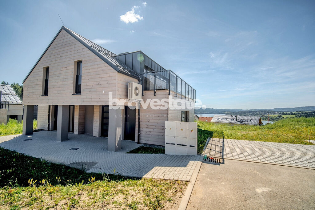 Řadový dům dispozičně 3+kk s podlahovou plochou 115,3 m² se nachází v kopci od přilehlého centra volnočasových aktivit a maximální občanskou vybaveností Lipna Nad Vltavou.